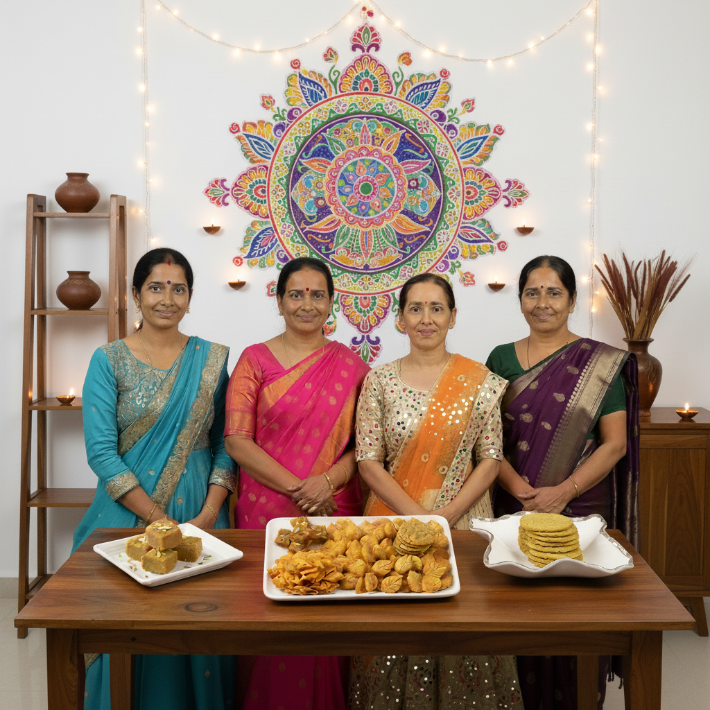 Thekua (Sweet Cravings) · Nimki (Chatpata Namkeen) · Channa Badam Barfi (Daily Protein) · Moong Dal Mathri (Chatpata Namkeen)
