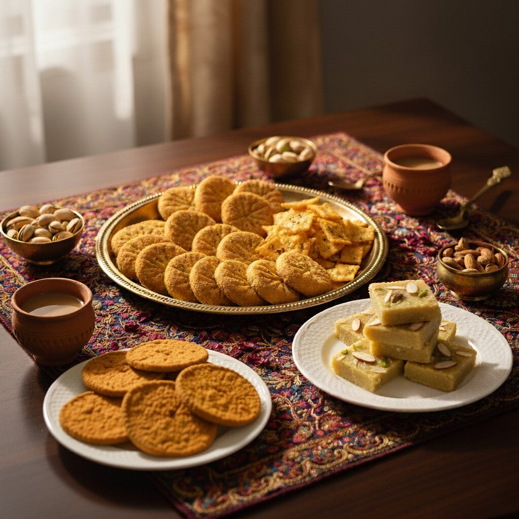 - Nimki gives that perfect flaky, savory crunch — light, ajwain-infused, and easy on the stomach.